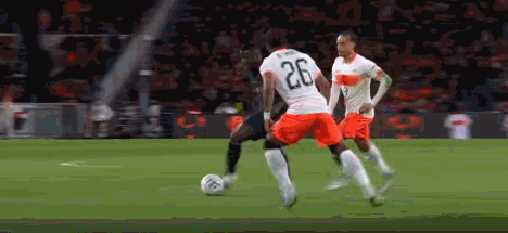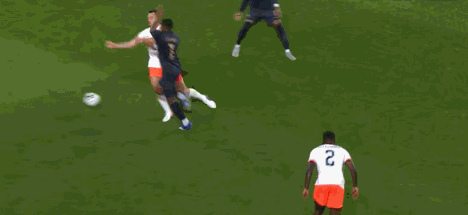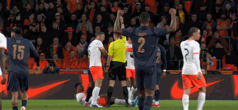 第13分钟,邓弗里斯作为最后一名防守球员拉倒普拉塔,被直红罚下